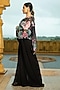 Black Georgette Jumpsuit With Floral Printed Cape For Girls