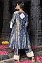 Blue Banarasi Silk Tissue Blend Embroidered Kurta Set For Girls