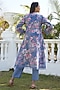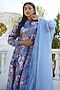Featuring a blue kurta for girls in linen base with floral print and lace detailing. It is paired with straight pants and a dupatta. Style it with sandals and hair accessories for a festive ceremony.