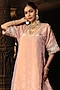 Blush Pink Banarasi Silk Tissue Blend Embroidered Kurta Set For Girls
