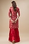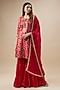 Featuring a bright red kurta for girls in brocade base. It is paired with satin silk sharara pants and an organza dupatta. Style it with sandals and hair accessories for a festive occasion or sangeet ceremony.