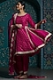 Fuchsia Pink Silk Brocade Tikki Flared Kurta Set For Girls
