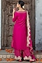 Fuchsia Pink Velvet Gota Embroidered Kurta Set For Girls
