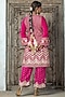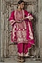 Fuchsia Pink Velvet Gota Embroidered Kurta Set For Girls