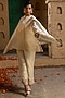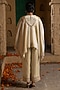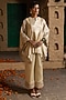 Featuring a gold cape for girls in banarasi silk tissue blend base with cutwork kasab embroidery. It is paired with pants and an inner slip. Style it with sandals and hair accessories for festive occasions or a sangeet ceremony.