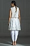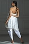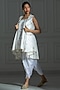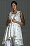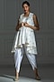 Featuring an ivory white jacket for girls in organza base with gold moti embellishment. It is paired with a brocade flared kurta having embroidery and satin silk tulip dhoti pants. Accentuate the designer kurta set with statement jewellery and sandals for festive occasions.