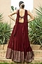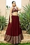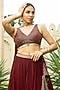 Featuring a maroon lehenga for girls in georgette base with embroidery. It is paired with an embroidered blouse having a v-neck and a choker dupatta. Style it with sandals and hair accessories for a sangeet or wedding ceremony.
