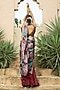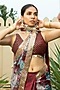 Featuring a maroon saree for girls in georgette base with floral print and embroidery. It is paired with a blouse having mirror embroidery. Accentuate it with matching hair accessories and sandals for a stylish ensemble, ideal for a festive occasion or wedding ceremony.