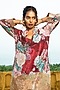 Featuring a maroon mini dress for girls in georgette base with floral print and a V-neckline. It is paired with a bralette. Accentuate it with matching hair accessories and sandals for a stylish ensemble, ideal for a festive occasion or wedding ceremony.