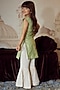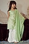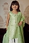 Featuring a green sleeveless kurta for girls in brocade silk base. It is paired with off-white rayon embellished sharara pants, a kota doriya dupatta and a potli. Elevate your look for any special occasion or wedding by accessorizing this designer sharara set with sandals and cute hair accessories. It's the perfect way to add a touch of glamour and elegance to your ensemble.