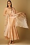 Featuring a peach flared anarkali kurta for girls in georgette brocade base. It is paired with a matching organza scalloped dupatta.