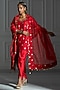 Rose Red Brocade Embroidered High-Low Kurta Set For Girls