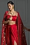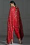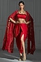 Featuring a rose red cape for girls in organza base with sequins embroidery. It is paired with a satin silk tube top and dhoti pants. Accentuate the designer kurta set with statement jewellery and sandals for festive occasions.