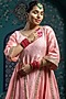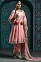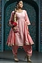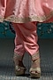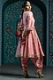 Salmon Pink Silk Brocade Flared Kurta Set For Girls