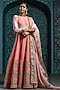 Salmon Pink Silk Brocade Gota Embroidered Anarkali Set For Girls