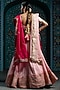 Salmon Pink Silk Brocade Gota Embroidered Lehenga Set For Girls