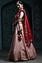 Featuring a salmon pink kalidar lehenga for girls in silk brocade base with gota embroidery. It is paired with a velvet embroidered blouse and soft organza two dupattas having gota tassels detailing. Accentuate it with a sling bag and sandals for a wedding or engagement ceremony.