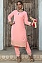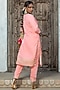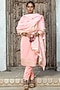 Salmon Pink Velvet Tikki Embroidered Kurta Set For Girls