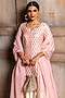 Featuring a blush pink short kurta for girls in brocade base with chikankari embroidery. It is paired with contrasting white embellished sharara pants and an organza dupatta.