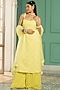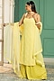 Featuring a yellow chikankari kurta for girls in georgette base with sequins embroidery. It is paired with flared sharara pants and an organza dupatta. Accentuate it with a potli bag and sandals for a festive occasion, wedding or engagement ceremony.