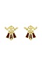 Gold Plated Garnet Enameled Floral Stud Earrings