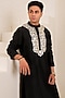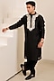 Featuring a black kurta in chanderi silk base with gota patti work. It is paired with cotton rayon pants. Style it with classic loafers and a watch for a refined traditional look, Perfect wear for festive gatherings or weddings, sangeet nights.