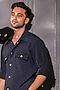 Featuring a black shirt in pure crepe lycra and cotton base with metallic buttons. Style it with pants and shoes for casual wear, exuding charm and elegance.