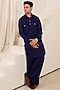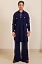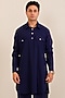 Featuring a dark blue short kurta in georgette base with metal buttons and panel detail. It is paired with pants. Style it with classic loafers and a watch for a refined traditional look, Perfect wear for festive gatherings or weddings, sangeet nights.