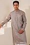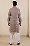 Featuring a grey kurta in pure chanderi base with machine embroidery. It is paired with cotton rayon pants. Style it with classic loafers and a watch for a refined traditional look, Perfect wear for festive gatherings or weddings, sangeet nights.