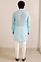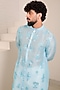 Featuring a light blue kurta in chanderi silk base with motif embroidery. It is paired with cotton pants. Style it with classic loafers and a watch for a refined traditional look, Perfect wear for festive gatherings or weddings, sangeet nights.