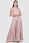 Featuring a champagne pink jumpsuit in dola silk base with linear reflective work.