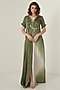 Featuring an ombre moss green dress in modal satin base with buttons and chain details.