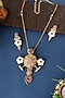 Featuring a gold finish temple long pendant necklace studded with kundan polki and mother of pearls, set in 92.5 sterling silver. It is paired with a pair of earrings. Perfect wear for festive occasions or wedding ceremonies.