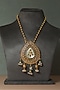 Featuring a gold finish temple necklace studded with mother of pearl, kundan polki and kemp stones, set in 92.5 sterling silver. Add a touch of sparkle to your ensemble, perfect for festive occasions, weddings or sangeet ceremony.