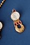 Featuring a gold finish temple pendant necklace studded with kundan polki and mother of pearls, set in 92.5 sterling silver. It is paired with a pair of earrings. Perfect wear for festive occasions or wedding ceremonies.