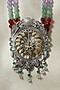 Featuring a two-tone finish temple pendant necklace studded with kemp stones and pearls, set in 92.5 sterling silver. Perfect wear for festive occasions or wedding ceremonies.