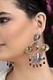 Two Tone Finish Multi-Colored Stone Temple Dangler Earrings In Sterling Silver