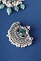 Featuring a white finish temple pendant necklace studded with green kemp stone and pearls, set in 92.5 sterling silver. It is paired with a matching pair of earrings. Perfect wear for festive occasions or wedding ceremonies.