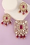 Featuring a white finish pendant studded with moissanite, set in 92.5 sterling silver. It is paired with a matching pair of earrings. Add a touch of sparkle to your ensemble, perfect for festive occasions, weddings or sangeet ceremony.
