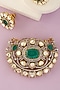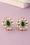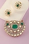 Featuring a white finish pendant studded with moissanite, set in 92.5 sterling silver. It is paired with a matching pair of earrings. Add a touch of sparkle to your ensemble, perfect for festive occasions, weddings or sangeet ceremony.