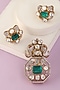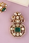 Featuring a white finish pendant studded with moissanite, set in 92.5 sterling silver. It is paired with a matching pair of earrings. Add a touch of sparkle to your ensemble, perfect for festive occasions, weddings or sangeet ceremony.