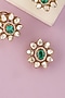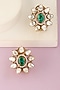 Featuring a white finish pendant studded with moissanite, set in 92.5 sterling silver. It is paired with a matching pair of earrings. Add a touch of sparkle to your ensemble, perfect for festive occasions, weddings or sangeet ceremony.