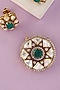 Featuring a white finish pendant studded with moissanite, set in 92.5 sterling silver. It is paired with a matching pair of earrings. Add a touch of sparkle to your ensemble, perfect for festive occasions, weddings or sangeet ceremony.