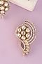 Featuring a white finish pendant studded with moissanite, set in 92.5 sterling silver. It is paired with a matching pair of earrings. Add a touch of sparkle to your ensemble, perfect for festive occasions, weddings or sangeet ceremony.