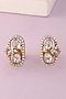 Featuring a white finish pendant studded with moissanite, set in 92.5 sterling silver. It is paired with a matching pair of earrings. Add a touch of sparkle to your ensemble, perfect for festive occasions, weddings or sangeet ceremony.