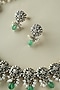 Featuring a white finish floral temple necklace studded with onyx and pearls, set in 92.5 sterling silver. It is paired with a matching pair of earrings. Perfect wear for festive occasions or wedding ceremonies.