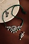 White Finish Onyx & Pearl Peacock Choker Temple Necklace Set In Sterling Silver