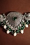 Featuring a white finish peacock choker temple necklace studded with onyx and pearls, set in 92.5 sterling silver. It is paired with a matching pair of earrings. Perfect wear for festive occasions or wedding ceremonies.