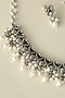 White Finish Onyx & Pearl Temple Bird Necklace Set In Sterling Silver