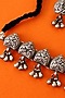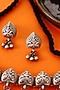 Featuring a white finish temple necklace, set in 92.5 sterling silver. It is paired with a matching pair of earrings. Add a touch of sparkle to your ensemble, perfect for festive occasions, weddings or sangeet ceremony.